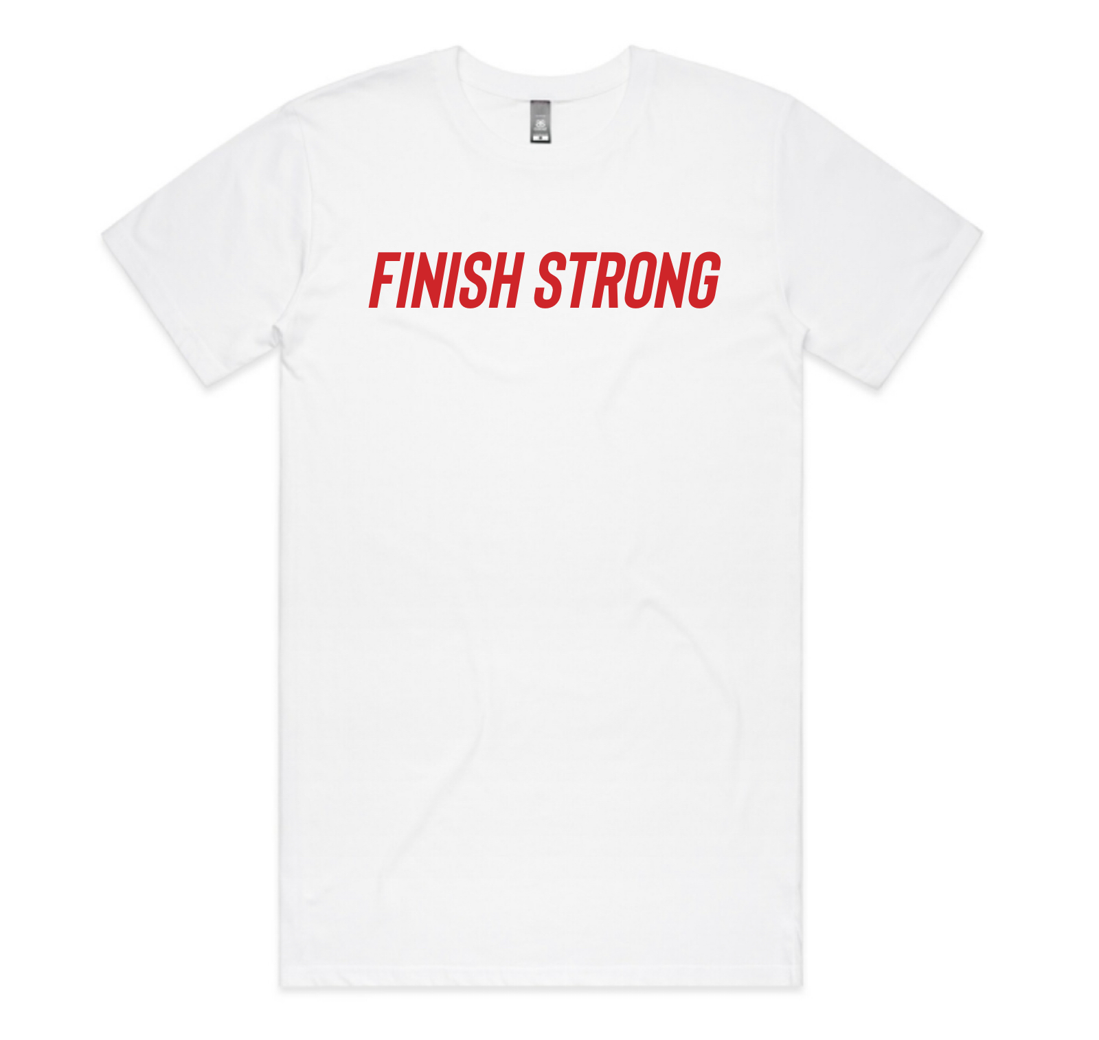 Finish Strong is the message you’ll own & send out as you wear this Tshirt out & about. These are our tall Tshirts so the Motov8 logo on the back will show when worn under a jumper or hoodie.